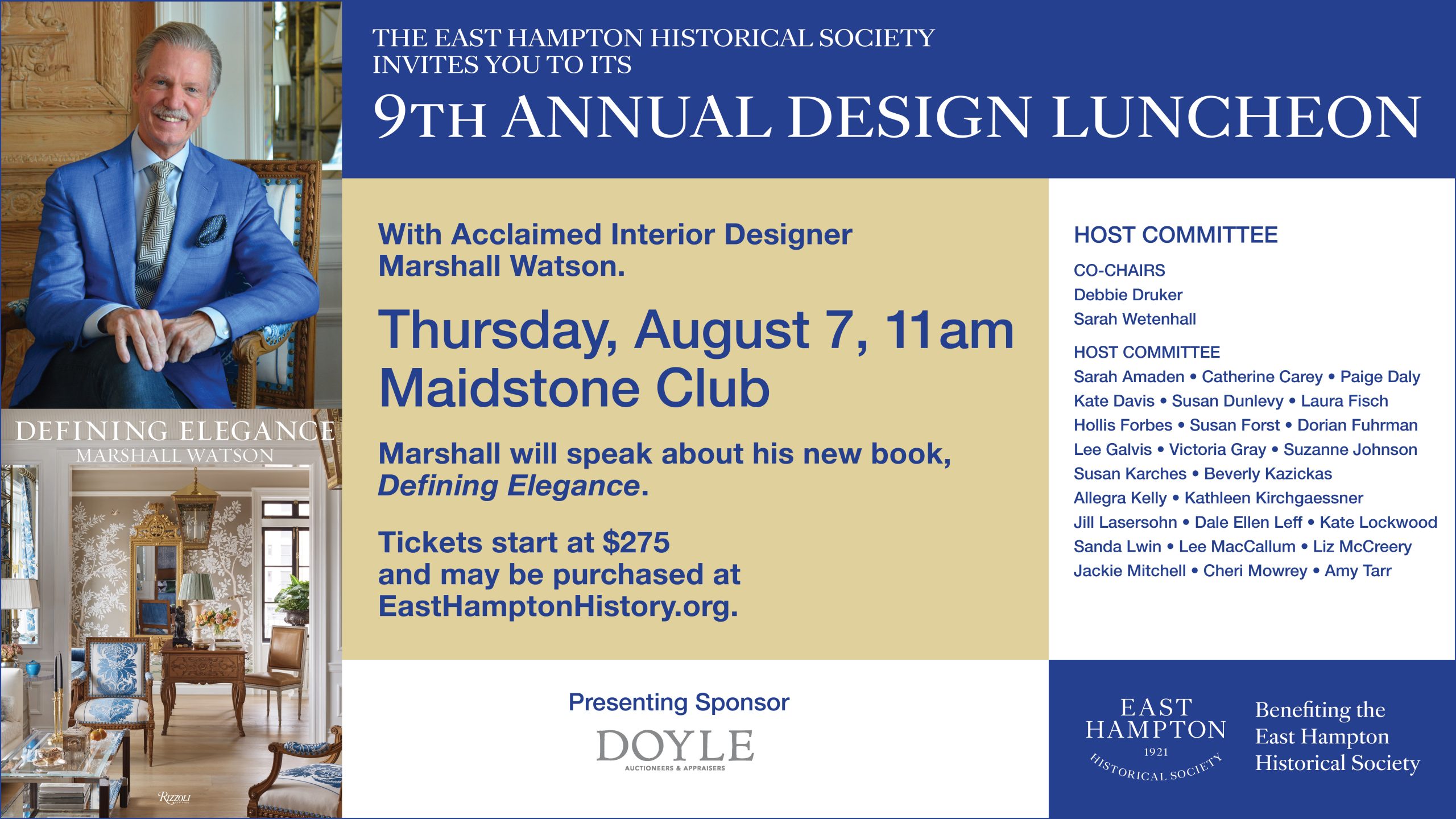 You’re invited to the Annual Design Luncheon benefiting the East Hampton Historical Society! This year’s program features renowned designer Marshall Watson discussing his new book, …